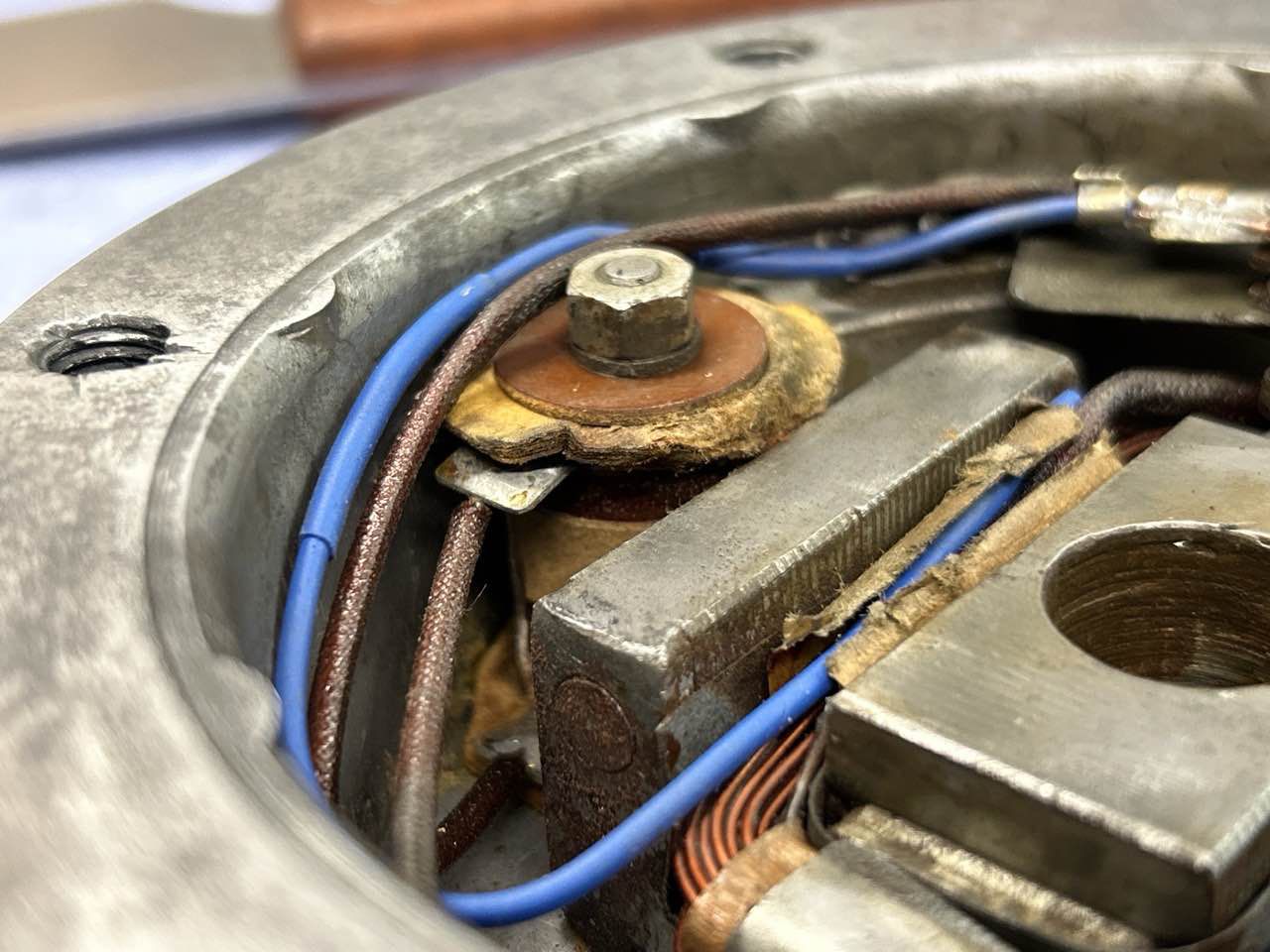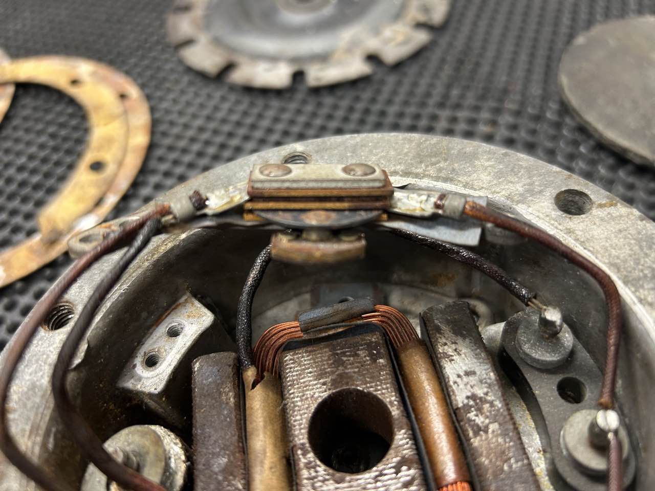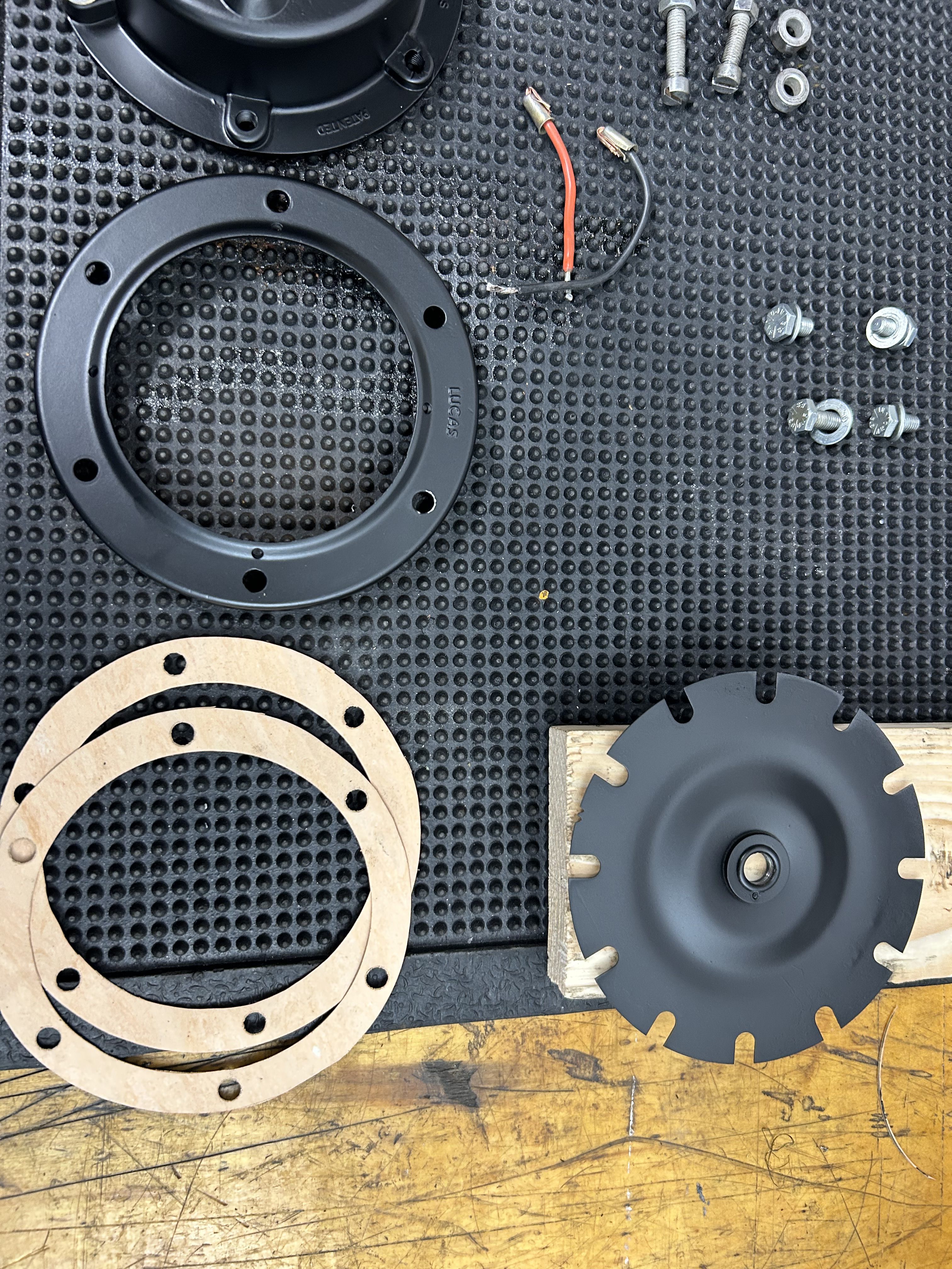 Beide Hupen wurden zur Prüfung zerlegt. Das Gehäuse, Membran und Rahmen wurden entrostet, anschießend nach Prüfung neu lackiert.