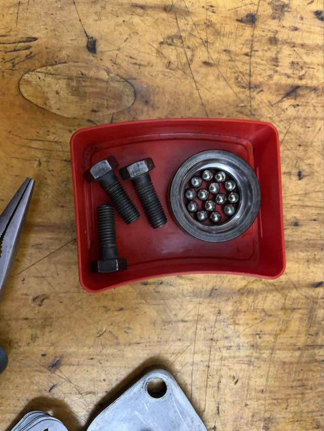 Das Lenkgetriebe wurde zerlegt, beide Lager wurden erneuert. Zudem hatte sich gezeigt, dass der Lenkungsfinger verschließen war. Ich habe das festgestellt, wenn im zusammengebauten Zustand die Lenkung betätigt wurde, lief diese nicht flüssig, sondern „ruckelte“. Nachdem ich den Lenkunsfinger dann ausgebaut hatte, konnte ich starke Abnutzungen im Lager erkennen.