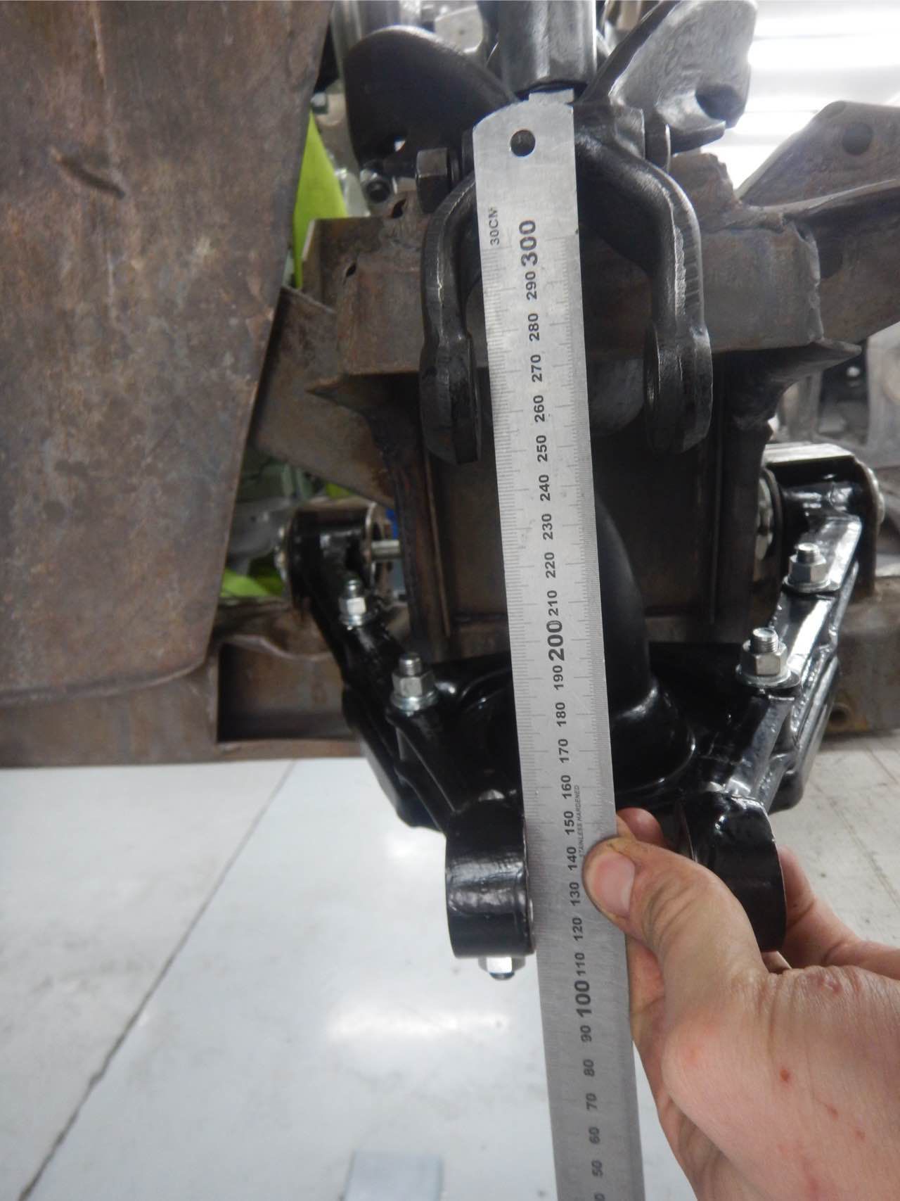 Zudem wurde festgestellt, dass die linke Seite im Bereich der Lenkungsbefestigung höher stand wie auf der rechten Seite. Auch das wurde korrigiert.