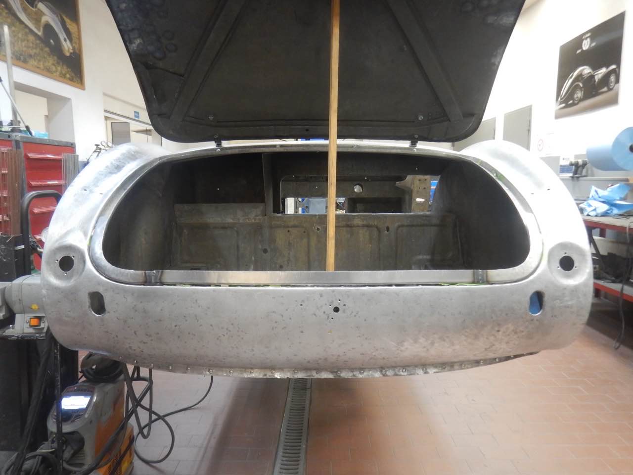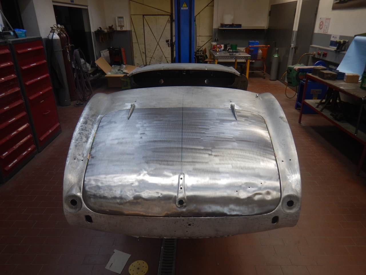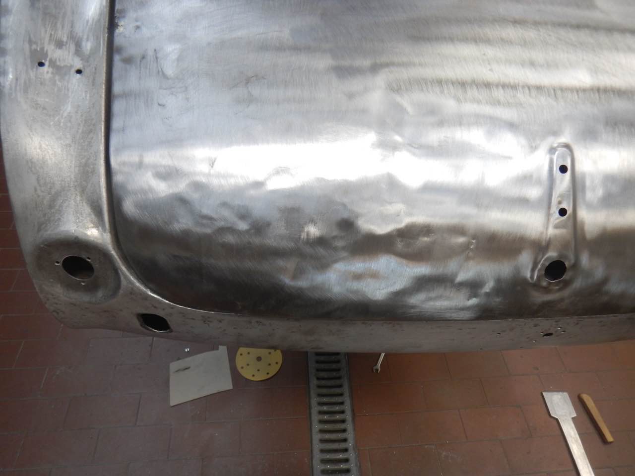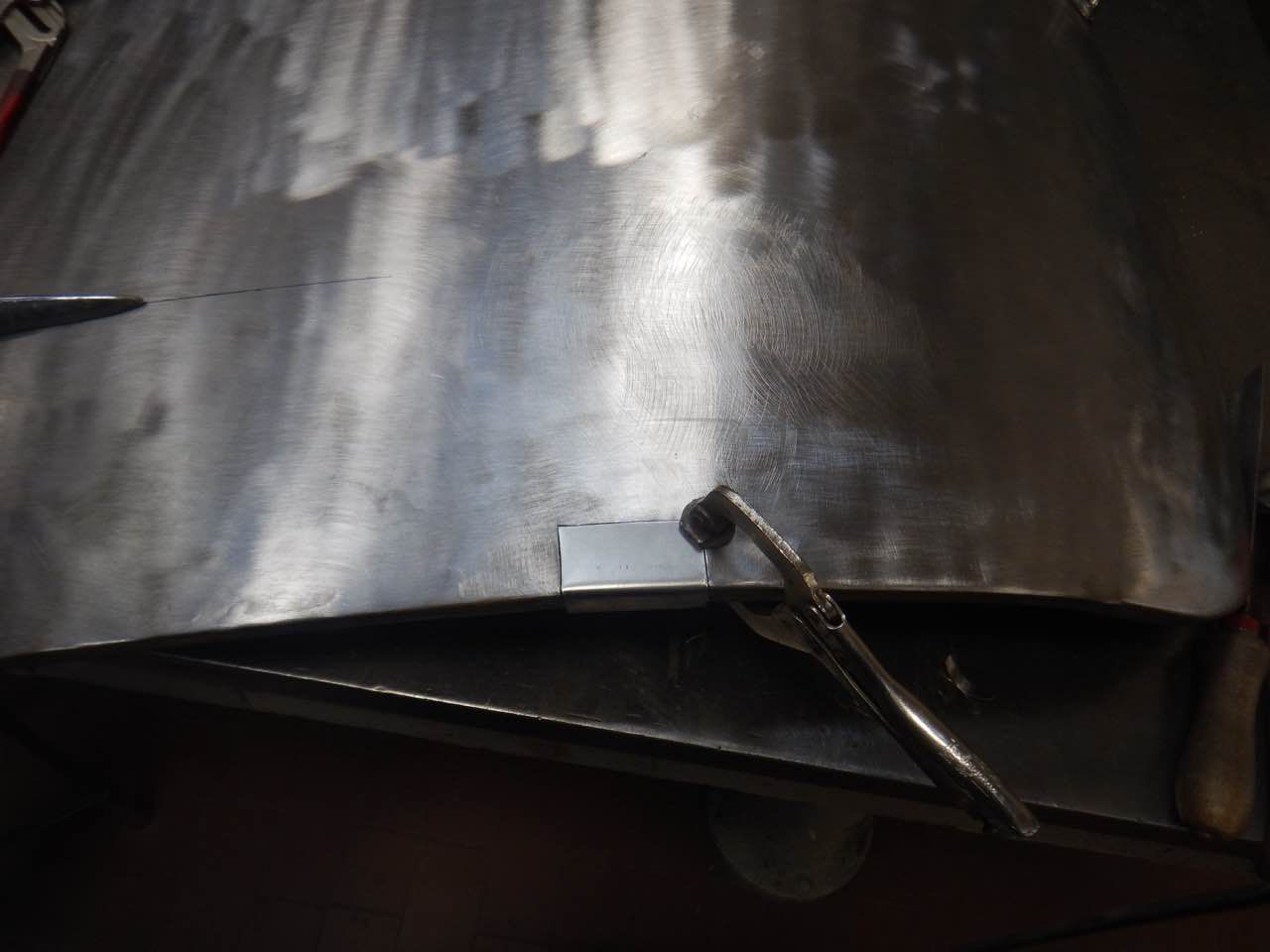 Das Heckshroud sowie der Kofferraumdeckel werden überarbeitet. Die Kofferraumabdeckung passt von den Spaltmassen sowie von der Krümmung im unteren Bereich nicht zu dem Heckshroud. Da das Blech sich nicht mehr gut bearbeiten lässt, wurde der untere Bereich neu geformt und in dem bestehenden Deckel eingesetzt.