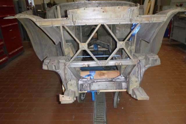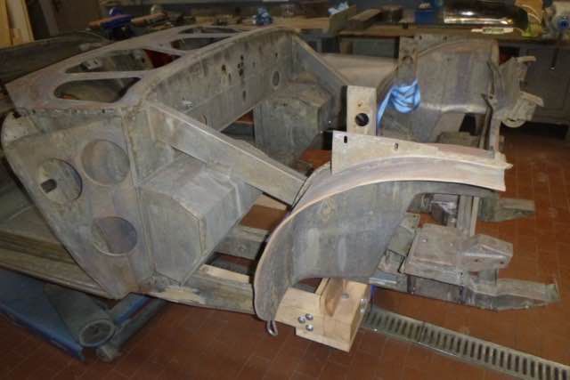 Chassisarbeiten - Teil 1 Der Karosseriebauer hat mit den Arbeiten am Chassis begonnen. Bisher wurden Bleche im Kofferraum und Fußraum überarbeitet. Im Kofferraum gab es einige Stellen, die auf den ersten Blick nicht zu erkennen waren. Aktuell wird an den B-Säulen und Querlenkeraufnahmen vorne...
