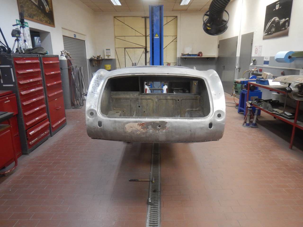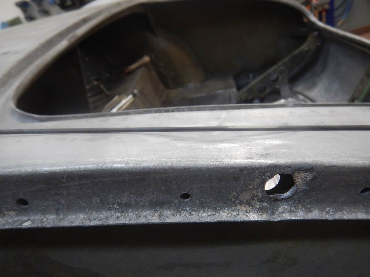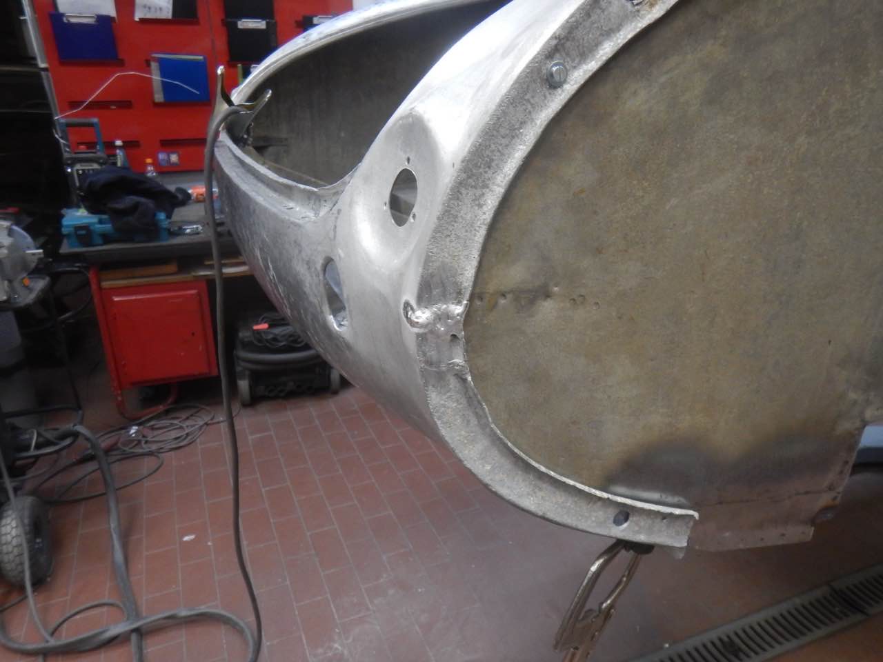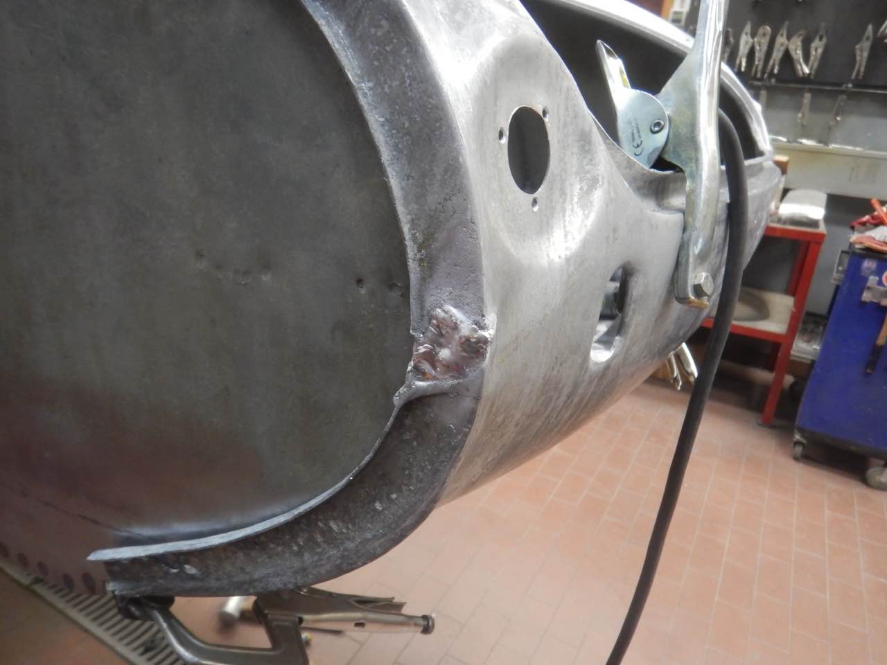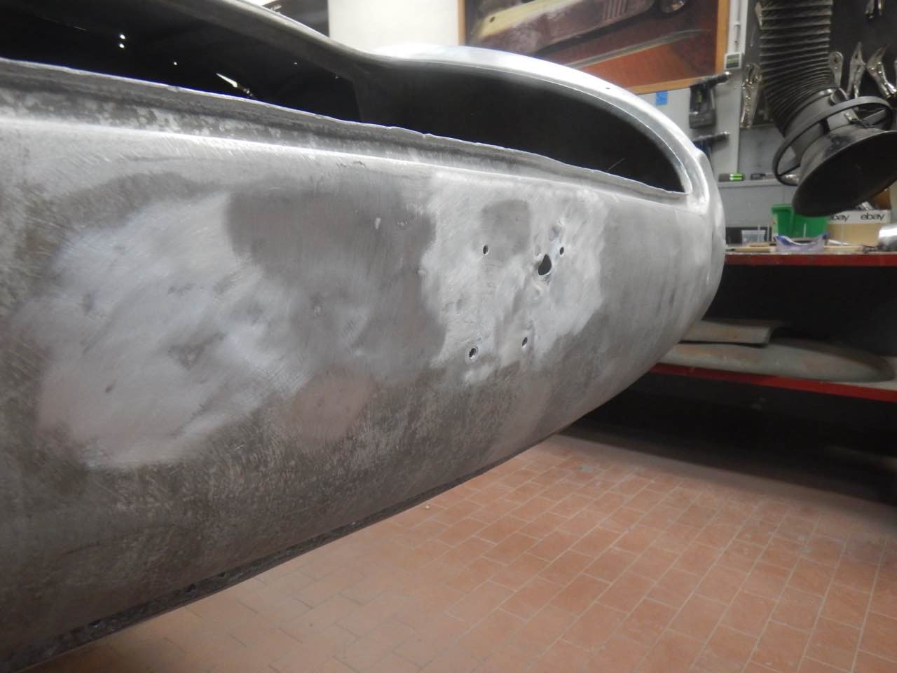 Das Heckshroud ist in einem guten Zustand und wird weiter verwendet. Es muss in einigen Bereichen geglättet werden und alte Löcher werden geschlossen.