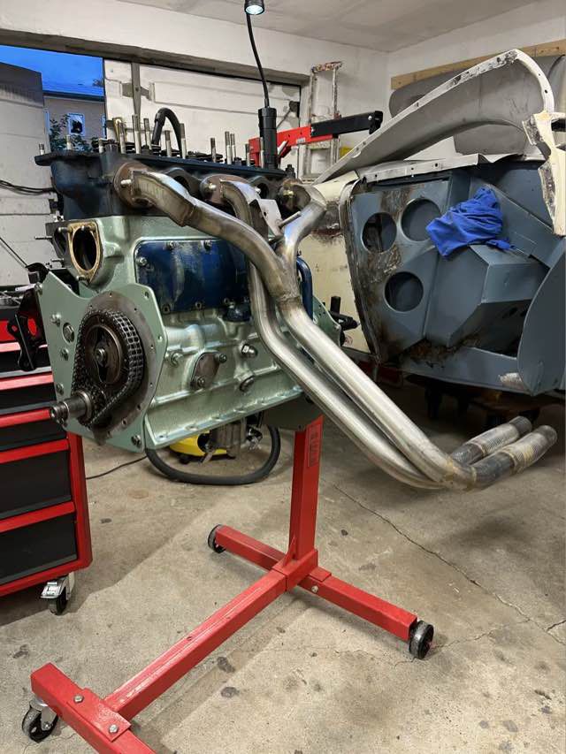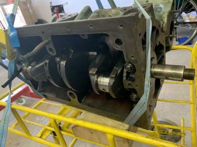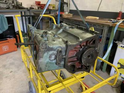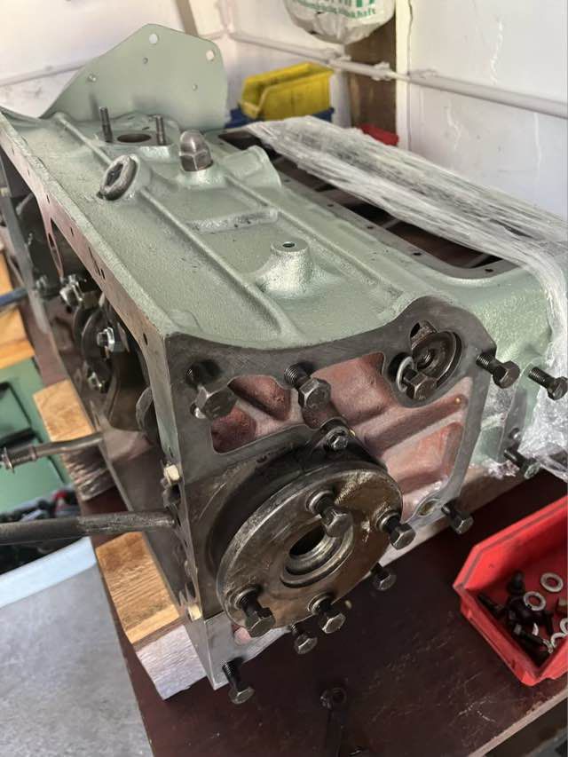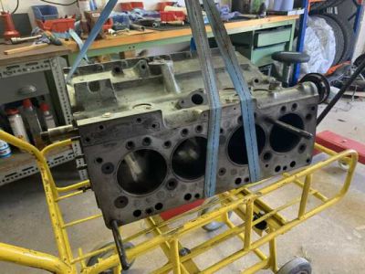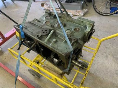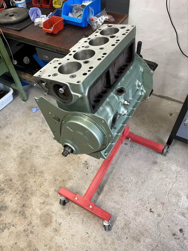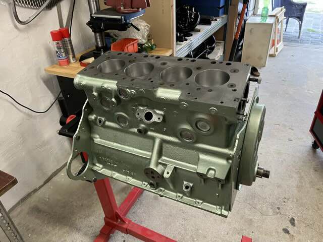 Motor ist überholt und wieder zurück. Es wurden neue Buchsen gesetzt mit neuen M-Kolben. Kurbelwelle ist neu gelagert und gewuchtet. Motor wurde auf Dichtheit geprüft und neu lackiert. In den kommenden Wochen wird der Motor zusammengebaut.