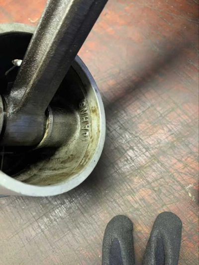 Die Ölpumpe ist soweit eigentlich in Ordnung, das Problem, das ich hier habe, ist, dass der Schraubanschluß für die Ölversorgung in den Motor nicht mehr in Ordnung ist. Da wurde mit roher Gewalt gearbeitet, sodass das Gewinde defekt ist.