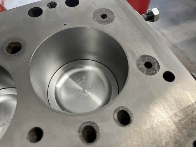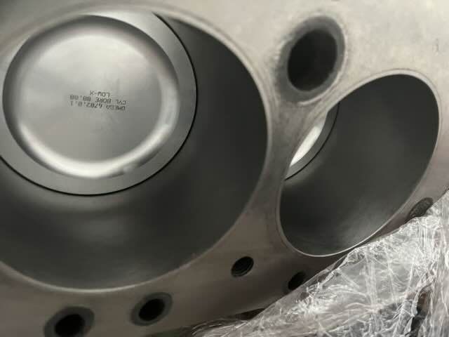 Bei der Begutachtung hat sich leider herausgestellt, dass es sich nicht mehr um Standardkolben handelt. Der Zylinderdurchmesser beträgt 91mm und liegt damit außerhalb der Spezifikation von 87mm. Es wird jetzt geprüft, ob wir dieses Übermaß behalten und die Laufbahnen nur für Hohnen oder Buchsen verwendet werden.