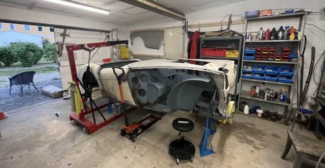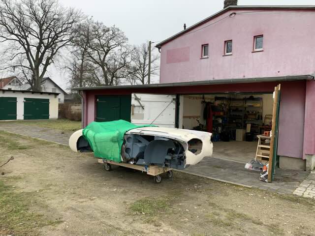 Der Wagen stand lange, ca. 25 Jahre, in unserer Garage in Marienfelde. Nach Marienfelde stand der Austin ca. 2 Jahre in einer nicht besonders guten Garage. Ein Arbeiten war hier nicht möglich. Zum Glück haben wir dann eine sehr geräumige und schön gelegene Garage in Genshagen gefunden. Die Bilder zeigen den Umzug von der Zwischenlösung nach Genshagen.