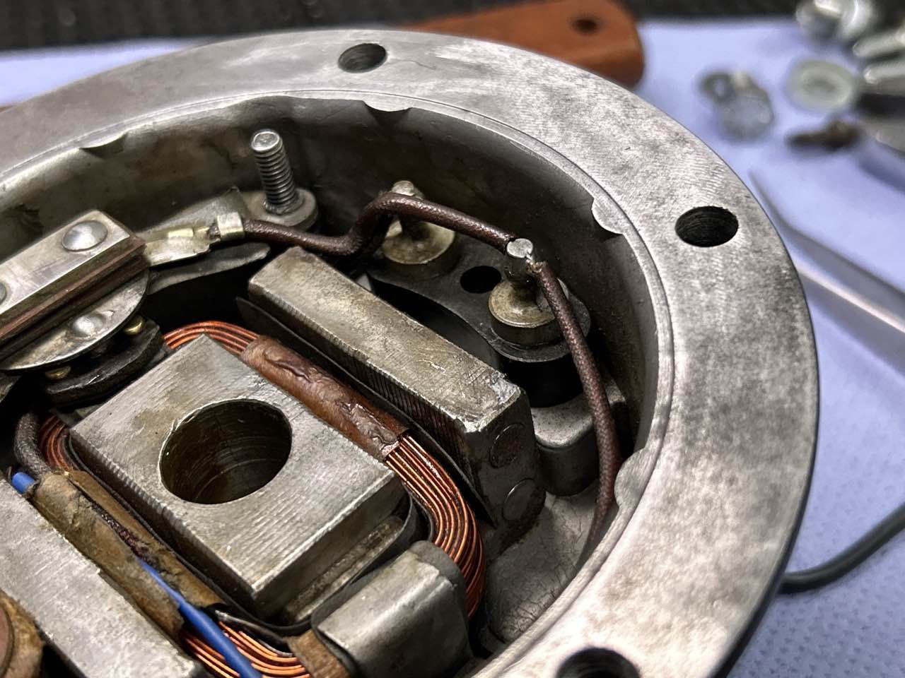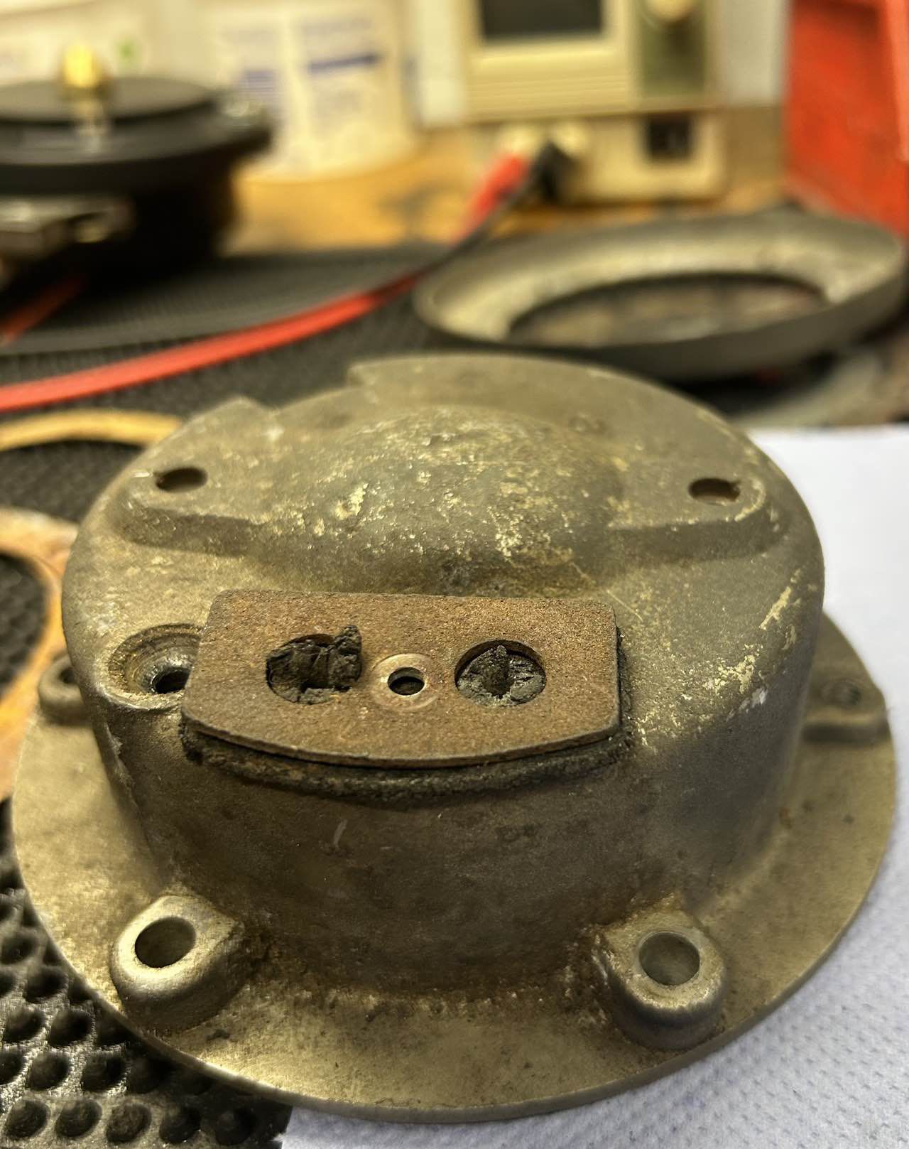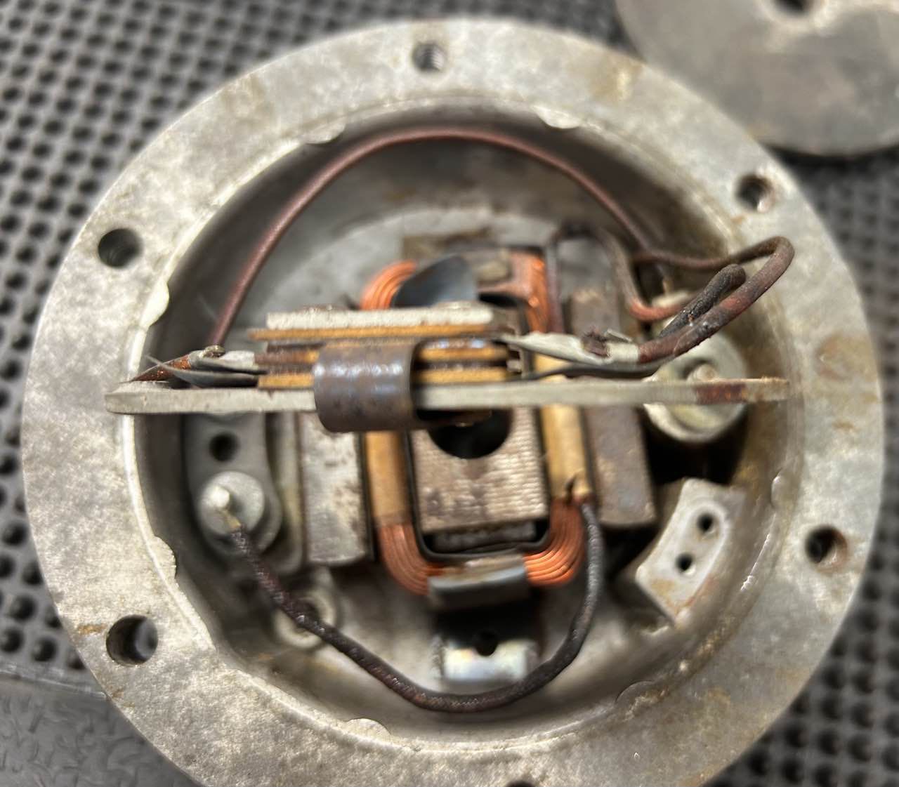 Beide Hupen wurden zur Prüfung zerlegt. Das Gehäuse, Membran und Rahmen wurden entrostet, anschießend nach Prüfung neu lackiert.