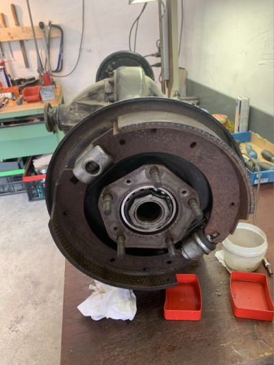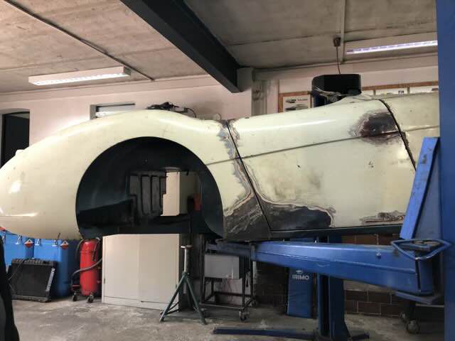 Der Karosseriebauer hat mit den Arbeiten am Chassis begonnen. Bisher wurden Bleche im Kofferraum und Fußraum überarbeitet. Im Kofferraum gab es einige Stellen, die auf den ersten Blick nicht zu erkennen waren. Aktuell wird an den B-Säulen und Querlenkeraufnahmen vorne gearbeitet.