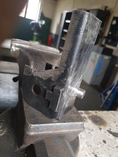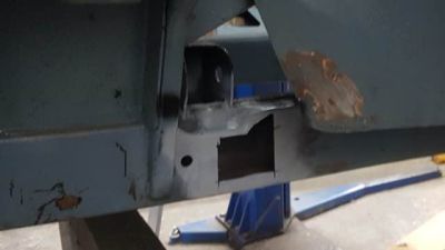 Die vordere Querlenkeraufnahme muss bei einem Unfall beschädigt worden sein, jedenfalls ist diese etwas verbogen. Daraufhin haben wir beschlossen, diese durch ein Neuteil zu ersetzen.