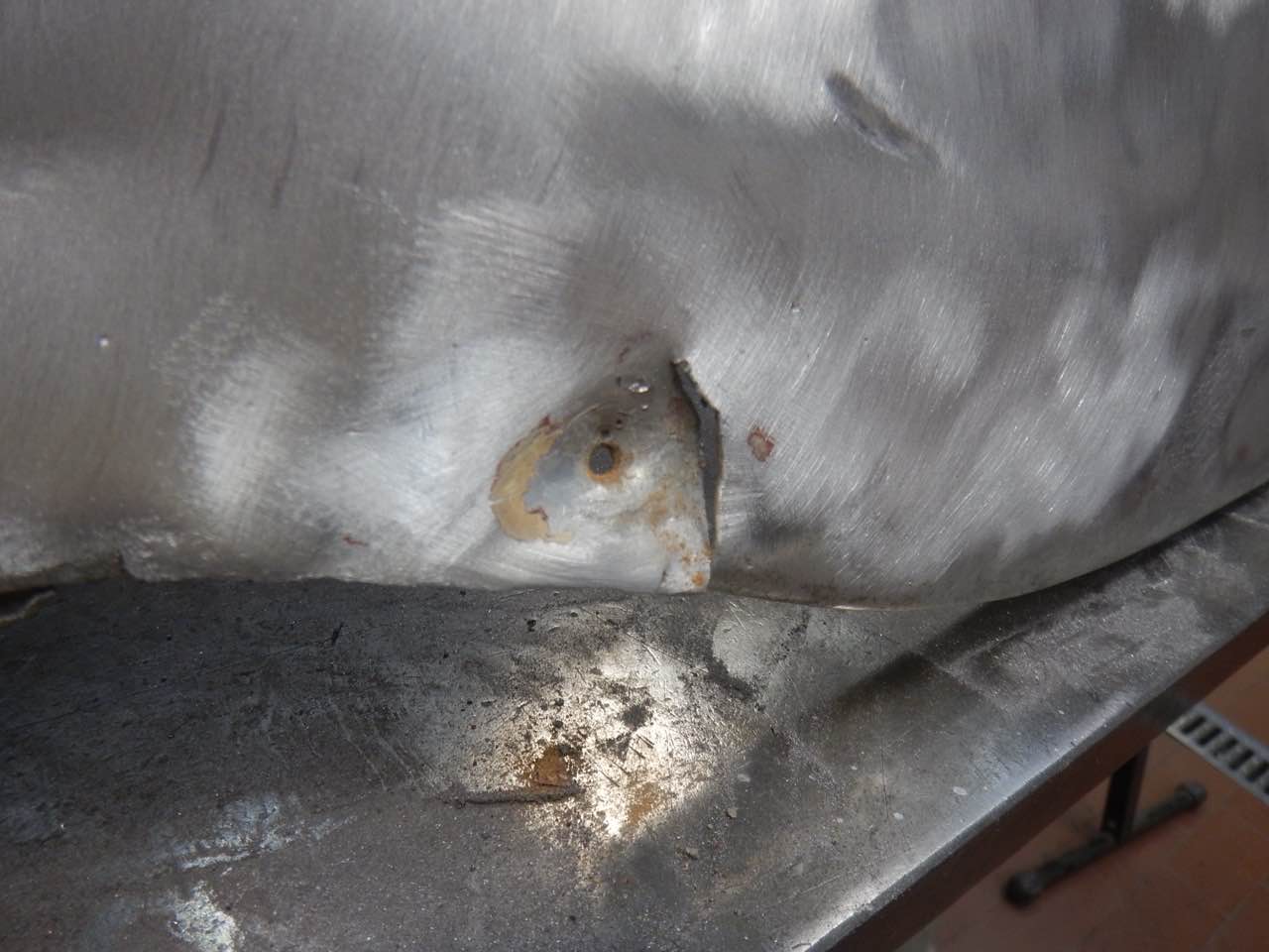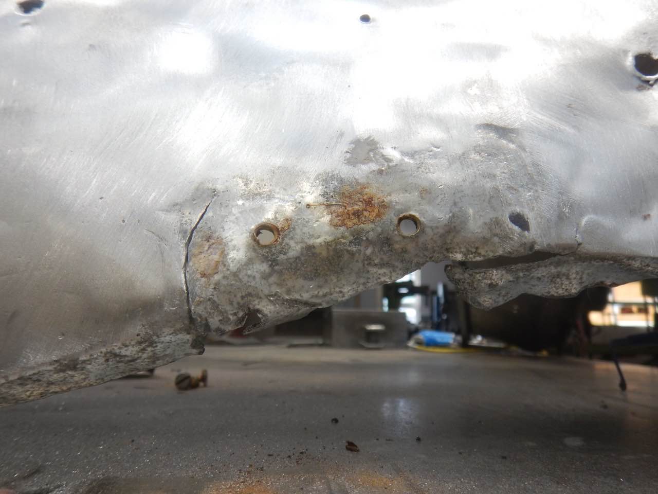 Das Frontshroud ist in keinem guten Zustand. Auf der Fahrerseite ist es im Bereich der Lampentöpfe stark beschädigt. Es wurde jedemenge Spachtel verwendet. Wir haben uns mit dem Restaurierungsbetrieb darauf verständigt nur für die Nase gegen ein Neuteil zu verwenden. Das Neuteil wird in das bestehende Teil eingearbeitet. Damit soll sich der Aufwand verringern.