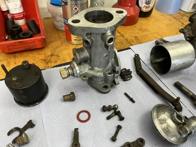 Bei beiden Vergasern ist die Drosselklappenwelle ausgeschlagen, nach einer Prüfung müssen auch die Buchsen ausgetauscht werden. Ich habe dazu einen entsprechenden Überholsatz in England bei SU für den H4 Vergaser bestellt.